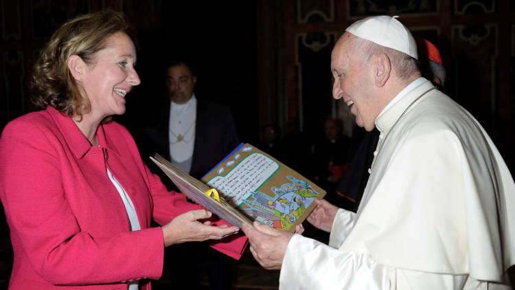 CAFOD’s Head of Education, Monica Conmee, handed the letters to the Holy Father at the Vatican.